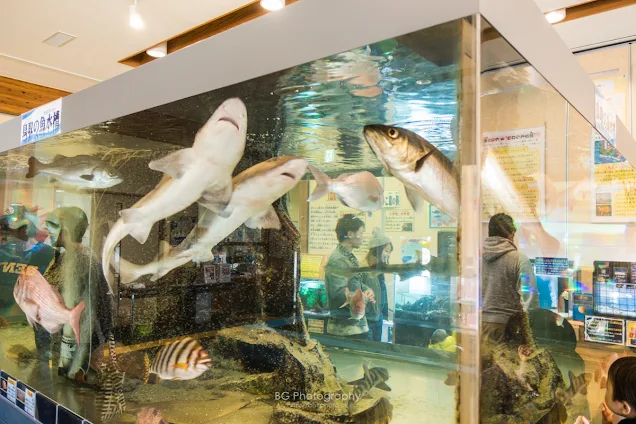 | 可在小水族館內觸摸海星、海膽、海參、一些貝類等等 |