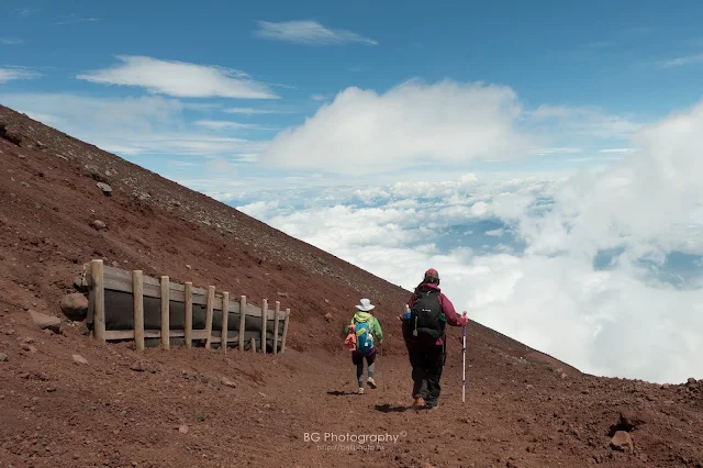 Hard worked reaching the summit of Mt Fuji, after exploring for half an hour, it's time to prepare for the descent.